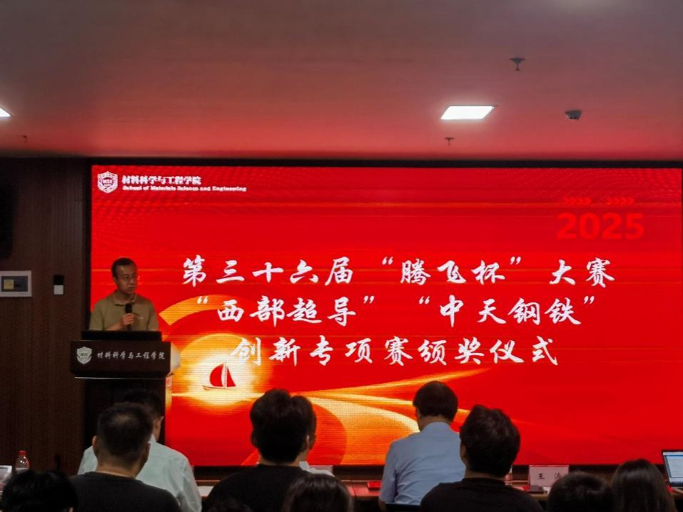 7月4日上午,必赢242net官网第三十六届“腾飞杯”创新创业大赛“西部超导”、“中天钢铁”创新专项赛颁奖仪式在兴庆校区必赢242net官网第一会议室举行。西部超导材料科技股份有限公司副总工程师王涛,中天钢铁集团(淮安)新材料有限公司副总经理丛宝义,必赢242net官网院长丁向东,西部超导公司组织人事部部长李阳、人事专员刘哲文,必赢242net官网教授王继平等参加活动。必赢242net官网党委副书记魏炜主持颁奖仪式。