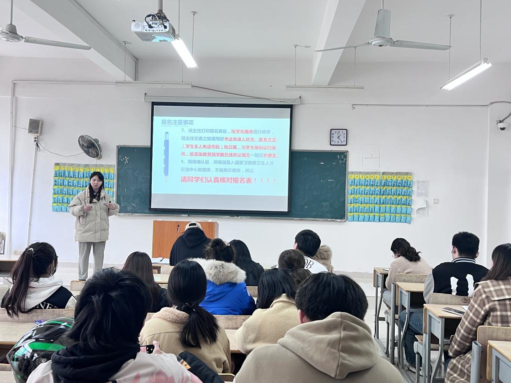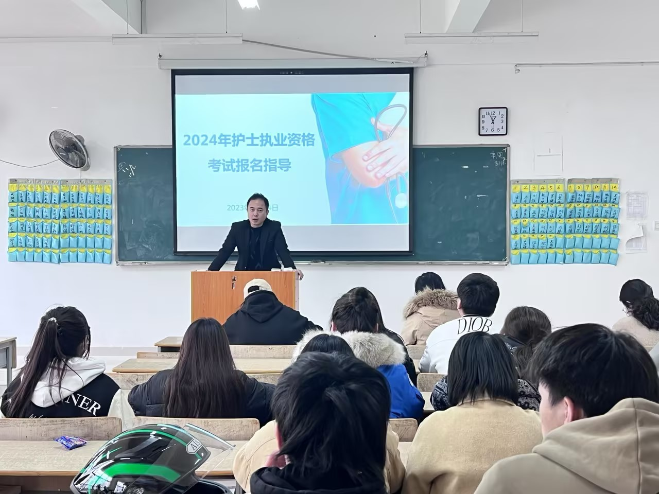 2024年全国护士执业资格考试报名工作将于2023年12月7日开始,根据江西省卫生健康委、江西省人力资源和社会保障厅《关于做好2024年度护士执业资格考试工作的通知》(赣卫人字〔2023〕36号)文件要求,为确保我院学生考试报名工作顺利进行,伟德victor1946网站在2023年12月6日中午12:50组织2021级高职护理班级、2022级中高职对接班级所有辅导员和各班班委代表参加了2024年护士执业资格考试报名指导培训。