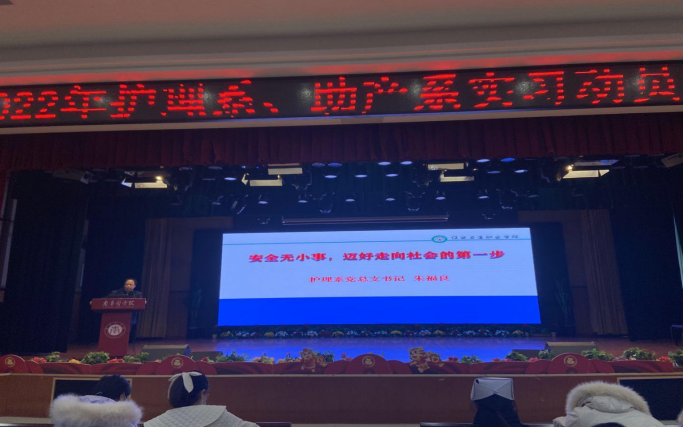 本次大会分为三项议程,会上,首先由王向东处长进行了实习动员报告,他指出我院历来重视实习工作,今年我院的实习生人数分布较往年分布更广,人数更多,为了让每个学生通过实习达到理论与实践结合、他强调每个实习生必须牢记自己的双重身份,既是学生也是护士。在实习期间要以学习为重,积极进取,同时增强集体荣誉感,实现学生向护士的角色转变,通过实习把自己培养成一名合格的护生。