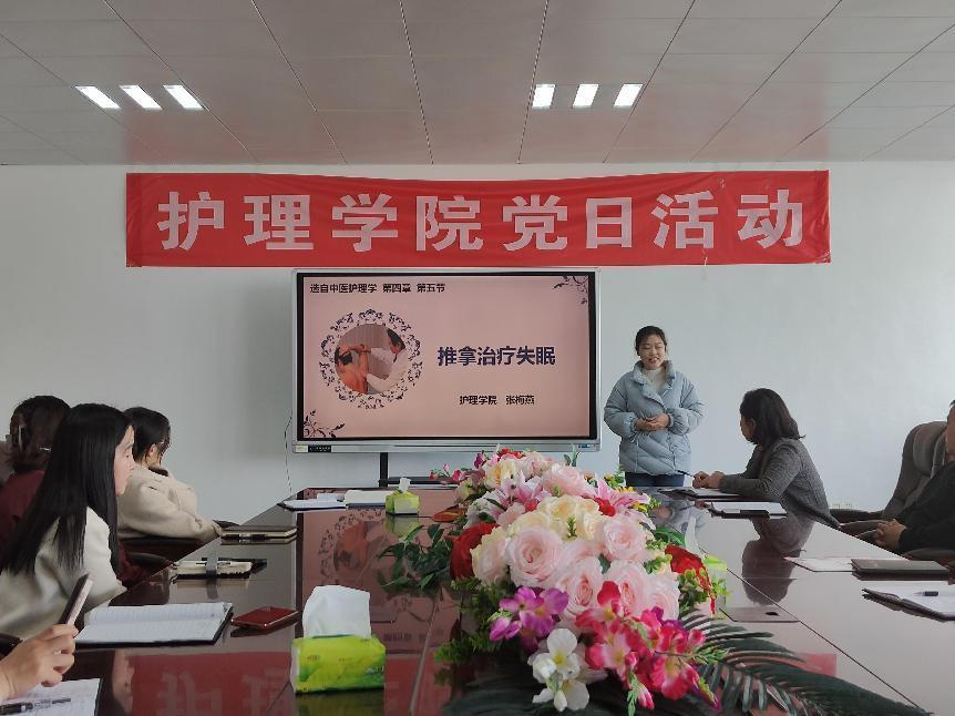 张梅燕老师试讲的内容是推拿治疗失眠,主要从失眠的概述、头面部推拿和推拿的注意事项三个方面进行授课。张梅燕老师课前准备充分、教态大方得体,教风从容淡定,教学思路清晰明了。