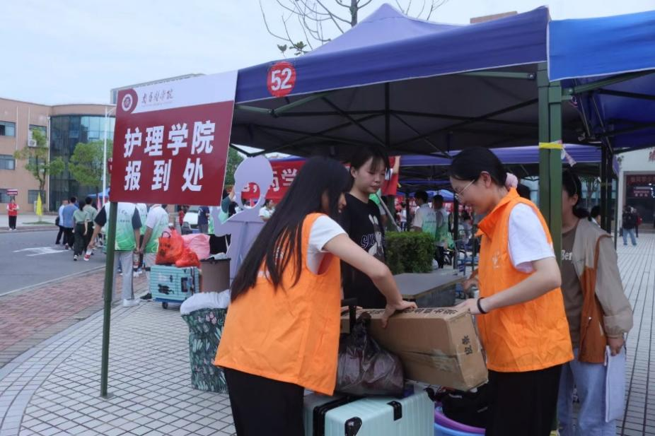 校园内,身穿“橙马甲”的志愿者身影在人群中来回穿梭,志愿者的一声欢迎、一个微笑、一次讲解,都汇聚了他们的热情与期待。报到处,各班辅导员与前来报到的新生亲切交流,及时了解学生需求,向新生们开启人生新旅程表示祝贺,鼓励大家科学规划大学生活,言辞与行动尽显关心与爱护。