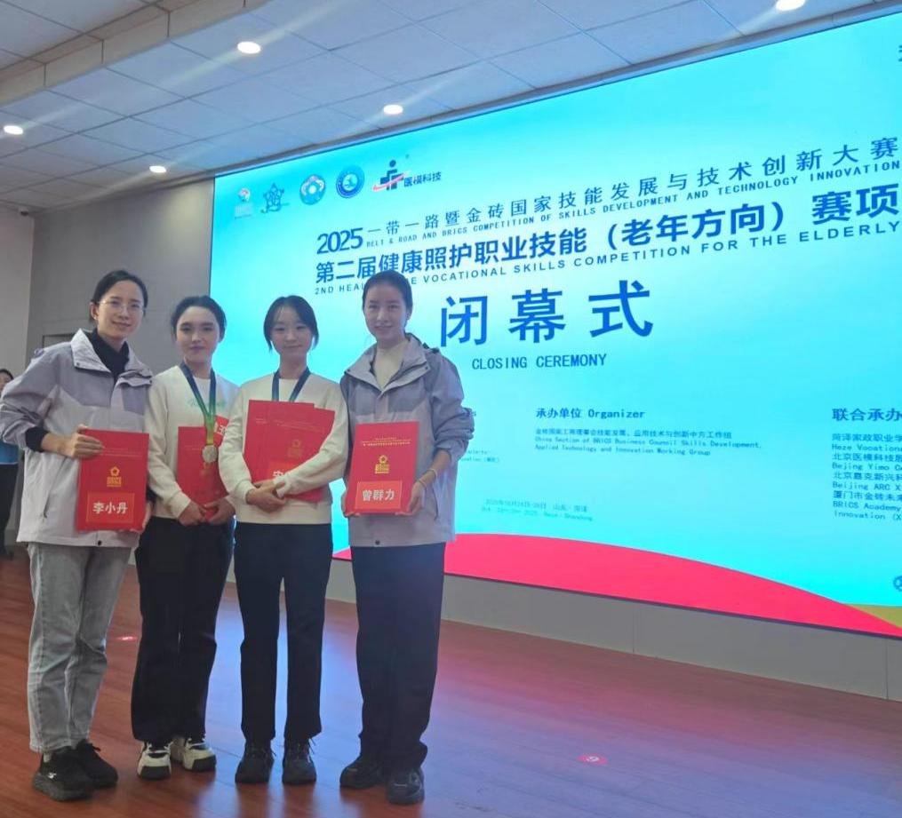 近日,在刚刚落幕的2025一带一路暨金砖国家健康照护技能大赛中,我院学子再创佳绩,实现“双喜临门”!两名2023级护理本科生魏玉婷、宋羽坤,在我院李小丹、曾群力老师的精心指导下,凭借出色的专业能力与稳定的临场发挥,双双荣获全国二等奖;同时,伟德victor1946网站荣获大赛“优秀组织奖”,展现出我院在健康照护教育领域的卓越实力与组织水平。