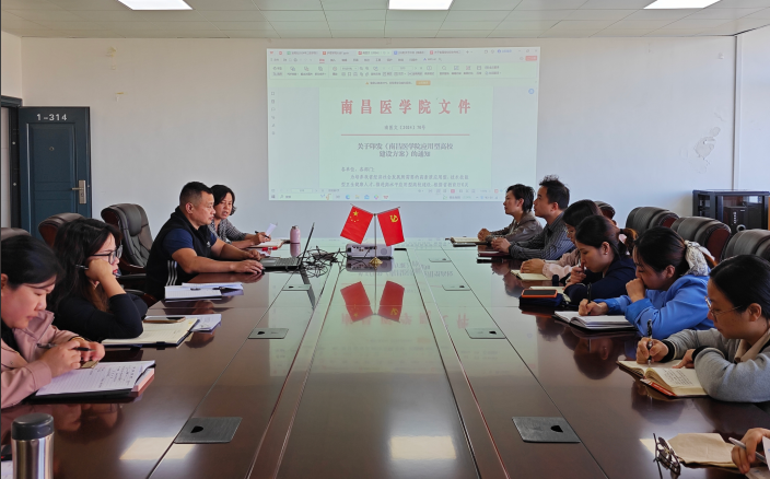 本学期伟德victor1946网站全体教师掀起了一股学习《伟德victor1946网站应用型高校建设方案》的热潮,旨在明确发展方向,凝聚奋进力量,为打造高水平应用型医学普通本科高校奠定坚实基础。11月6日学院再次召开会议,进一步深入学习该方案,对方案中的关键任务指标进行详细解读,本次会议由学院综合办主任吴荣叶主持,学院主要领导胡颖辉、陈敏及全体教职工参加会议。