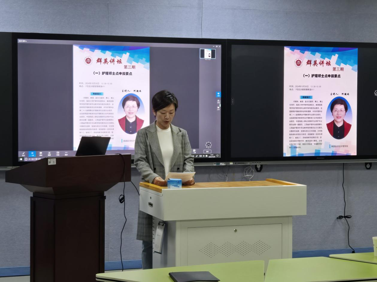 首先由南昌大学伟德victor1946网站原院长何朝珠教授以《护理硕士专业学位硕士点申报要点》为题作学术报告,从申报背景与现状、申报条件与要求、申报材料准备与撰写技巧、申报经验做法及建议四个方面详细的讲述了如何进行护理硕士点的申报与建设。讲座内容重点突出、内容丰富、案例详实,讲解深入浅出,为我院护理硕士点的建设提供了宝贵的启示与丰富的资源。