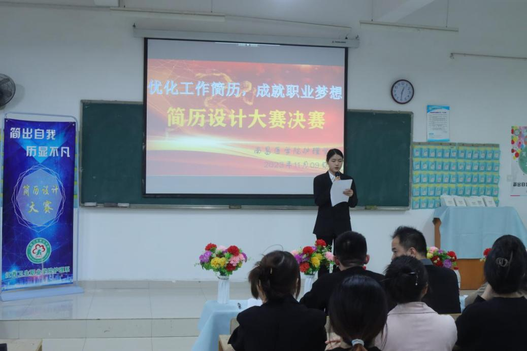 决赛现场,选手们以PPT为载体详细阐述自己的简历内容、设计思路和设计亮点,展现个人的求职意向、个人经历、个人奖项、个人优势以及对未来的职业规划,展示了大学生施展才华、统放青春的魅力风采。候场选手及观众都在认真聆听,仔细思考,充分展现了当代学子朝气蓬勃的精神风貌和锐意进取的新形象。